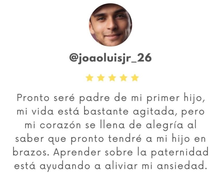 La psicología y la neurociencia coinciden en que la previsibilidad reduce el estrés. Con la Guía de la Paternidad – Los Primeros 90 Días, comprenderás de forma clara y objetiva lo que generalmente se vive el día del parto y en las semanas que siguen al nacimiento del bebé. Son 60 páginas con temas bien organizados para facilitar la lectura.